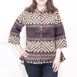 Lingkar dada maksimal 100 cm model batik samping. Model baju batik wanita lengan panjang selanjutnya memiliki hiasan kerah berbentuk pita.